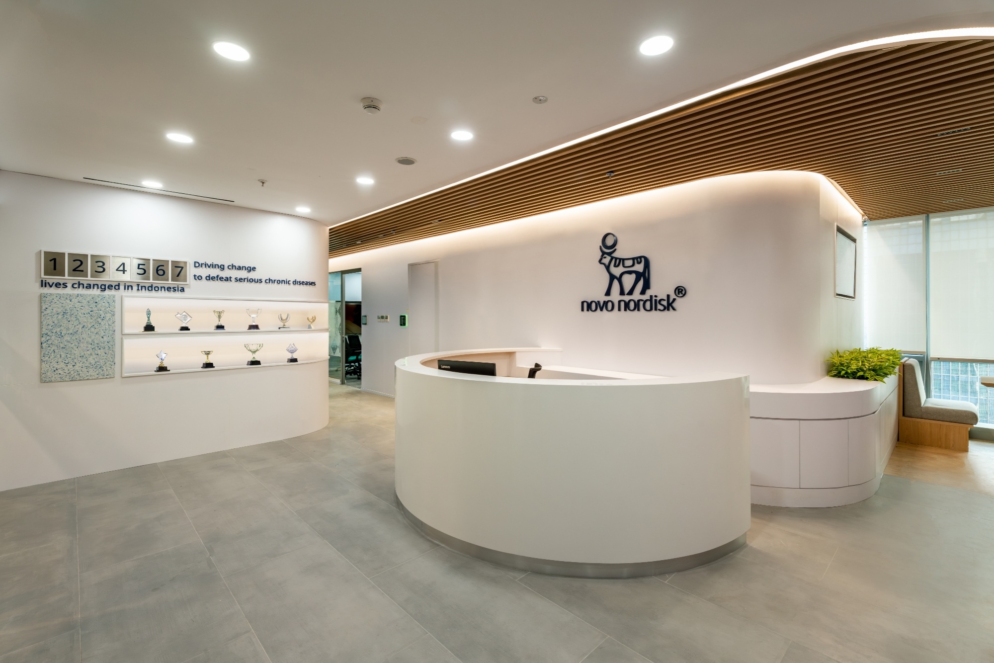 In partnership with Colliers, we transformed Novo Nordisk’s Jakarta office into a harmonious blend of modern design and cultural significance. Inspired by Novo Nordisk’s mission to innovate and heal, this space captures the company’s pioneering spirit through a futuristic yet warm and inviting aesthetic that resonates throughout.